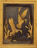 The first item is a carving of ducks landing in a marsh. The